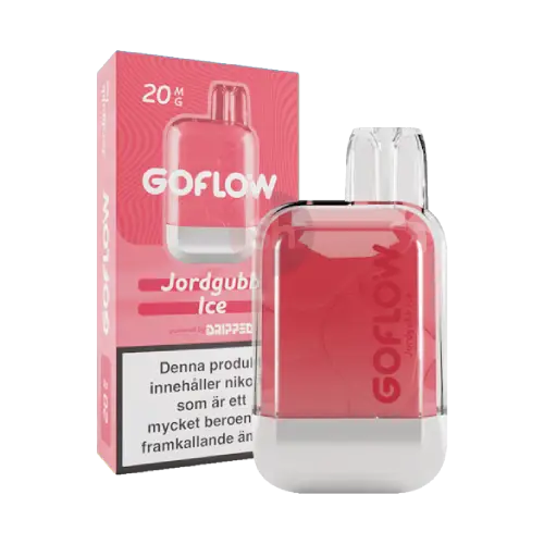 Dripped GoFlow Jordgubb Ice 20mg är en engångsvape med smak av jordgubb i kombination med en sval kylande ton. Nikotinhalten uppgår till 20 mg/ml. Produkten levereras som en förfylld enhet och är avsedd att användas direkt utan behov av laddning eller påfyllning.