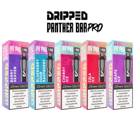 Dripped PB Pro Mesh Poddar är förfyllda smakpoddar utvecklade för podsystemet Dripped Panther Bar Pro.