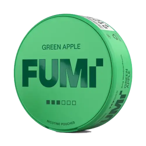 FUMi Green Apple Strong (tidigare FUMi Tangy Apple Strong) är ett tobaksfritt vitt snus från Helix Sweden AB med ett uppdaterat recept och en ännu mer balanserad smakprofil. Här möts sötma och syrlighet från grönt äpple i en frisk och tydlig smak som passar perfekt för dig som gillar fruktiga alternativ med lite extra sting.