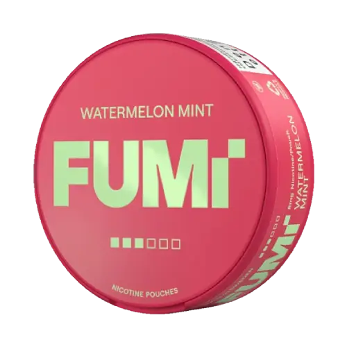 FUMi Watermelon Mint Strong är ett tobaksfritt vitt snus som kombinerar söt och saftig vattenmelon med en frisk och kylande ton av mentol.