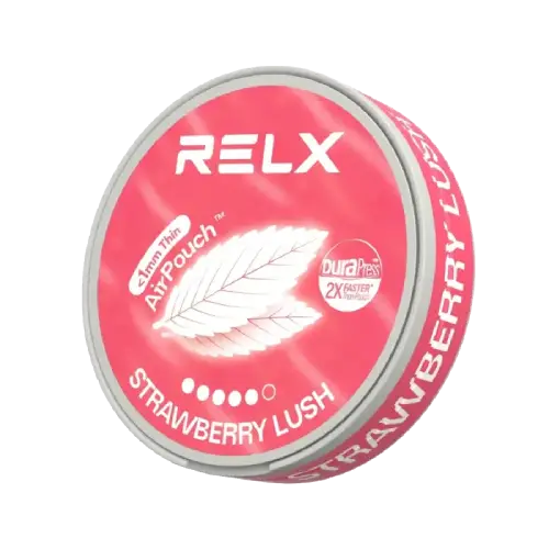 RELX AirPouch Strawberry Lush är ett tobaksfritt vitt snus med innovativ design och en söt smak av jordgubb.