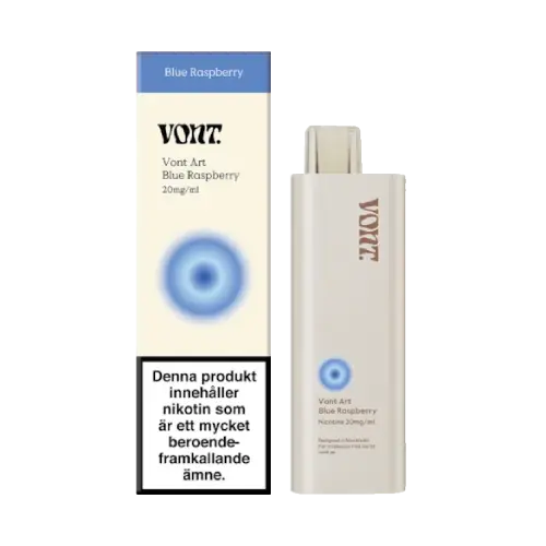 Vont Art Blue Raspberry är en engångsvape från Vont Vape med en fruktig och lätt syrlig smak av blå hallon. Produkten är framtagen för att vara enkel att använda direkt ur förpackningen och kräver varken laddning eller påfyllning.