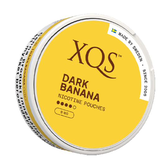 XQS Dark Banana Slim Strong är ett tobaksfritt vitt snus i slim-format med smak av banan och mörk choklad.